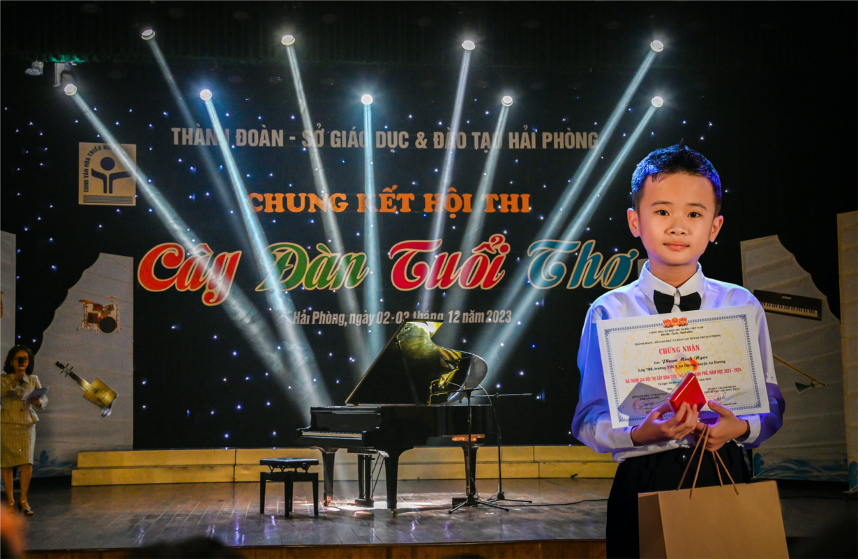Trường Tiểu học Thị Trấn Vĩnh Bảo vinh dự có 01 tiết mục tham gia dự thi Vòng chung kết là tiết mục biểu diễn của em Vũ Tuấn Minh – học sinh lớp 4B.