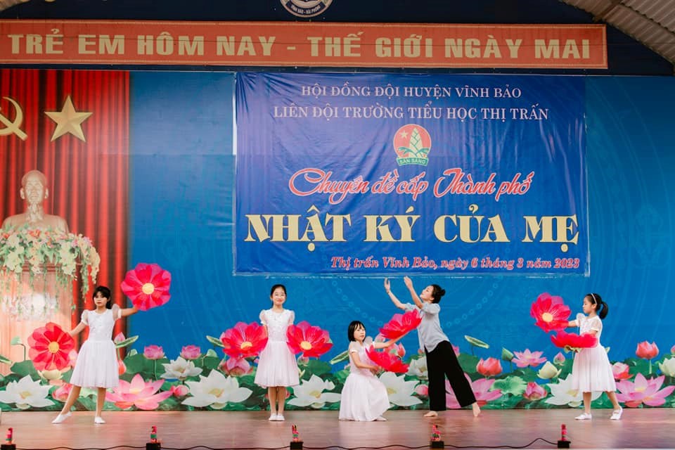 Sáng ngày 06/3/2023 liên đội trường tiểu học Thị trấn Vĩnh Bảo tổ chức chuyên đề "Nhật ký của mẹ" cấp thành phố. Qua chuyên đề giúp cho các em học sinh biết trân trọng hơn những điều tuyệt vời mà những người Phụ nữ trong cuộc đời của các bạn đã dành tặng cho cuộc sống, cho quãng đường đời mà các bạn đang chập chững những bước chân đầu tiên này.