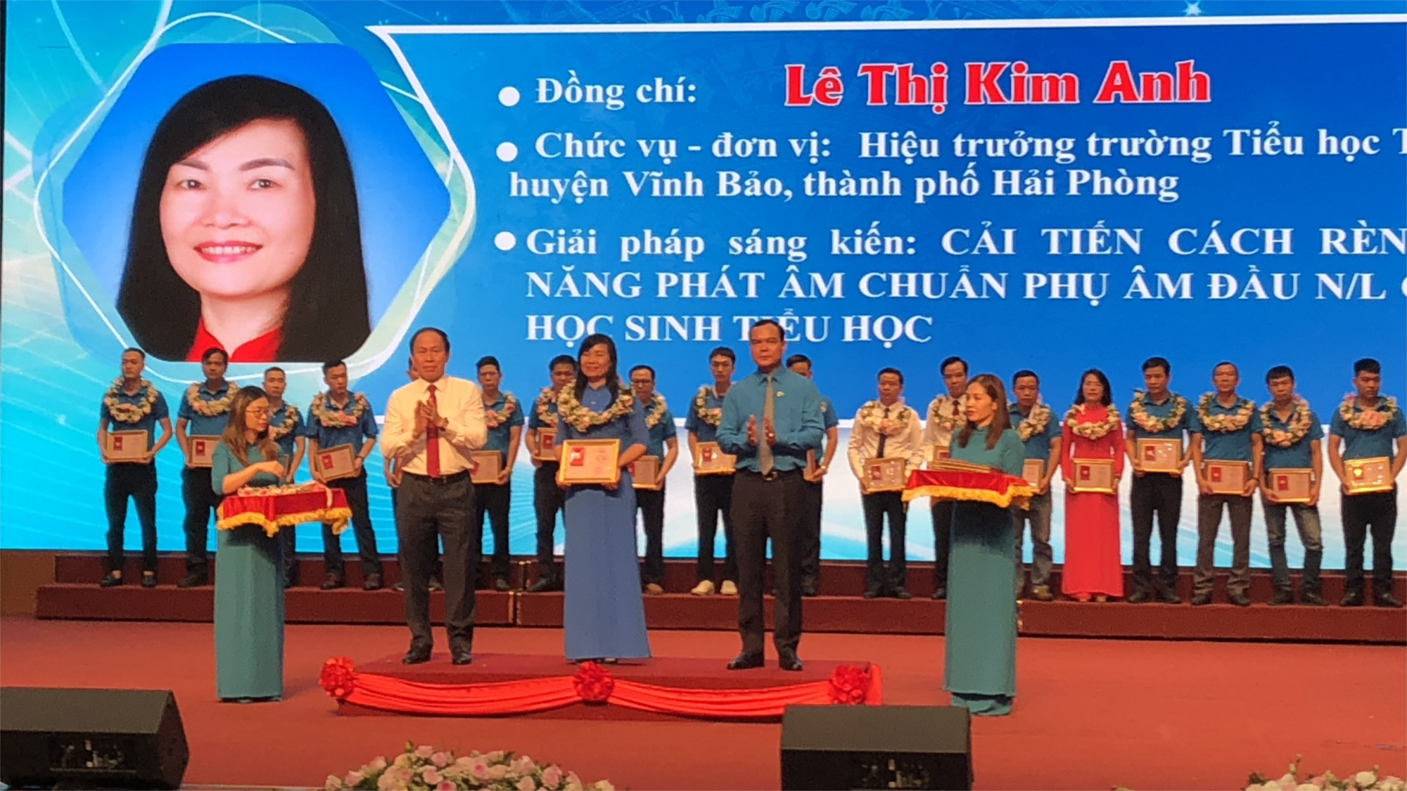 Tại Hội nghị, Trường TH Thị Trấn Vĩnh Bảo vinh dự có đồng chí Lê Thị Kim Anh Bí thư chi bộ - Hiệu trưởng nhà trường được nhận Bằng khen Lao động sáng tạo của Tổng LĐLĐ Việt Nam.